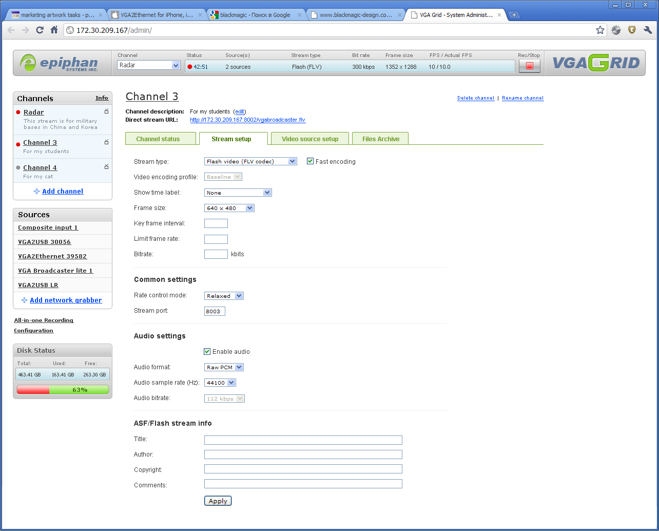 UI for Epiphan’s GRID product